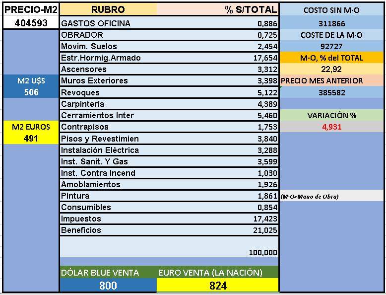 U$S 506 x metro cuadrado / dólares blue
